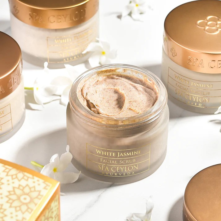 Eine cremige, natürliche Formel mit feinen Fruchtpartikeln und 100% reinem, kostbarem Jasminöl, das die Haut sanft aufhellt, und zum strahlen bringt. Die tief wirkenden Bestandteile Niem, Walnuss und weiße Mineralien vereinen sich, um die Haut sanft zu peelen, verstopfte Poren effektiv zu reinigen und abgestorbene Zellen und Unreinheiten zu entfernen. Jasmin, Avocado, Reiskleie und natürliche Vitamine helfen, den Hautton auszugleichen, während Süßholz, grüner Tee, Brunnenkresse und Bärentraube helfen, die allgemeine Erneuerung der Hautzellen zu fördern. Native Kokosnuss und Honig spenden Feuchtigkeit, glätten die Haut und machen sie angenehm weich. Dosha: Vatha – Für normale bis trockene Haut.